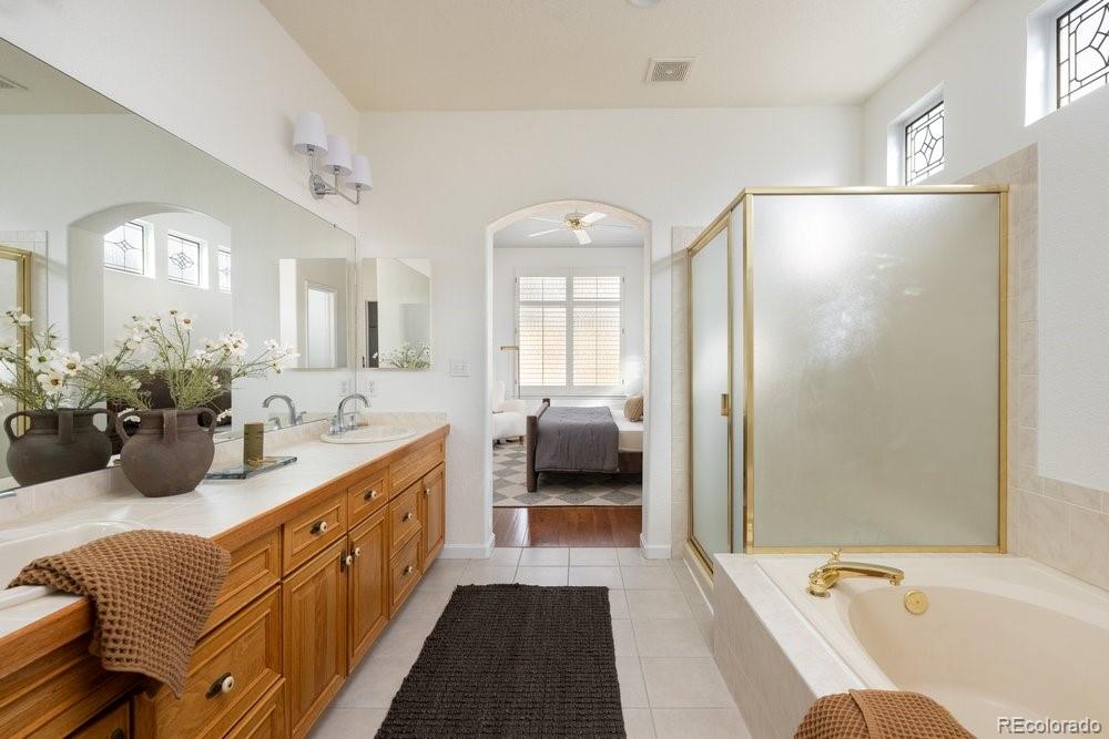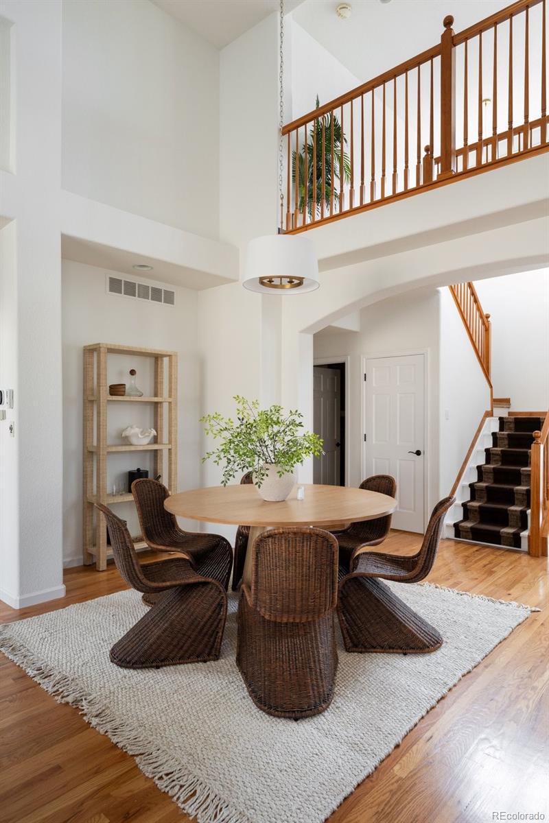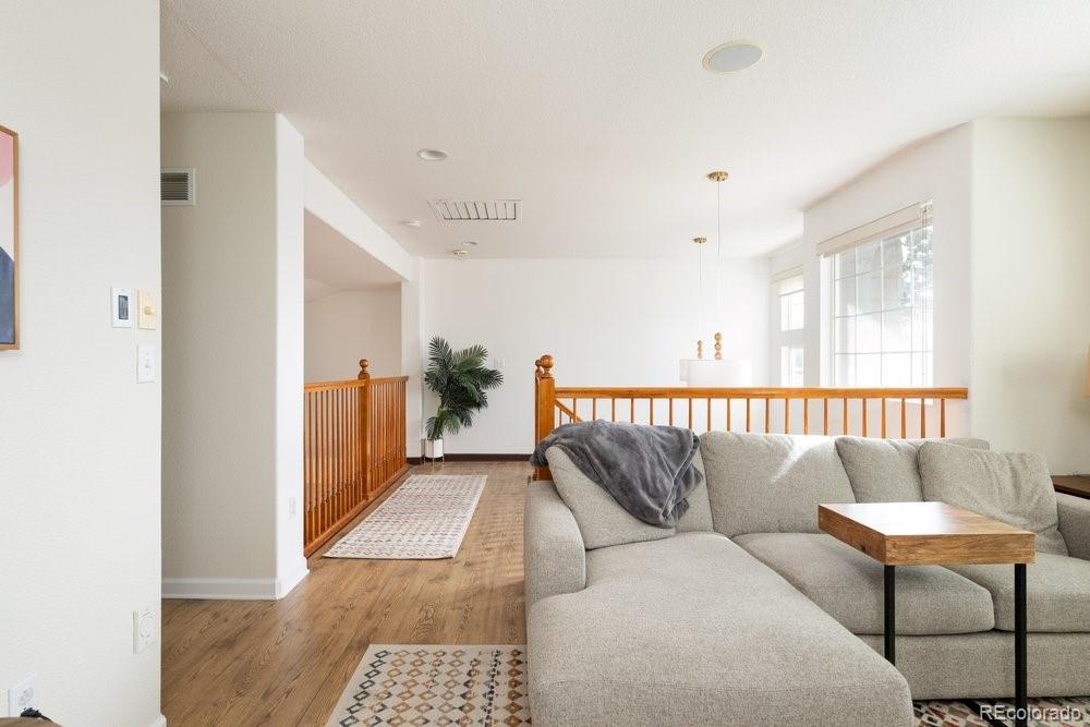 Welcome to effortless living in the desirable Wyndham community -- and welcome home to one of its most sought-after features: a main floor primary suite. This beautifully maintained detached single-family home offers 3 bedrooms, 4 bathrooms, and 2,973 square feet of finished living space, all wrapped in the ease of HOA living where exterior maintenance, landscaping, snow removal, and more are handled for you. The main floor is bright and inviting, with soaring vaulted ceilings and an abundance of natural light. The primary suite is a true retreat, featuring a spacious walk-in closet and a luxurious 5-piece ensuite bath -- all on the main level for ultimate convenience. Fresh paint throughout and updated designer lighting give the home a crisp, modern feel, while rich oak hardwood floors, granite countertops, stainless steel appliances, and timeless oak cabinetry create a warm and polished aesthetic. Main floor laundry and an attached 2-car garage round out the main level, and the whole-home vacuum system is in working order -- a rare bonus. Step outside to a peaceful backyard setting that backs directly to a greenbelt winding through the neighborhood -- perfect for morning walks or simply enjoying the view. Upstairs, you'll find a bright and sunny flex space ideal for a home office, playroom, or reading nook, along with an additional bedroom and full bath. The finished basement rounds out the home with newer carpet, a third bedroom, and a 3/4 bath -- great for guests or added privacy. Major systems have been updated, including the AC, furnace, and water heater, giving you peace of mind for years to come.