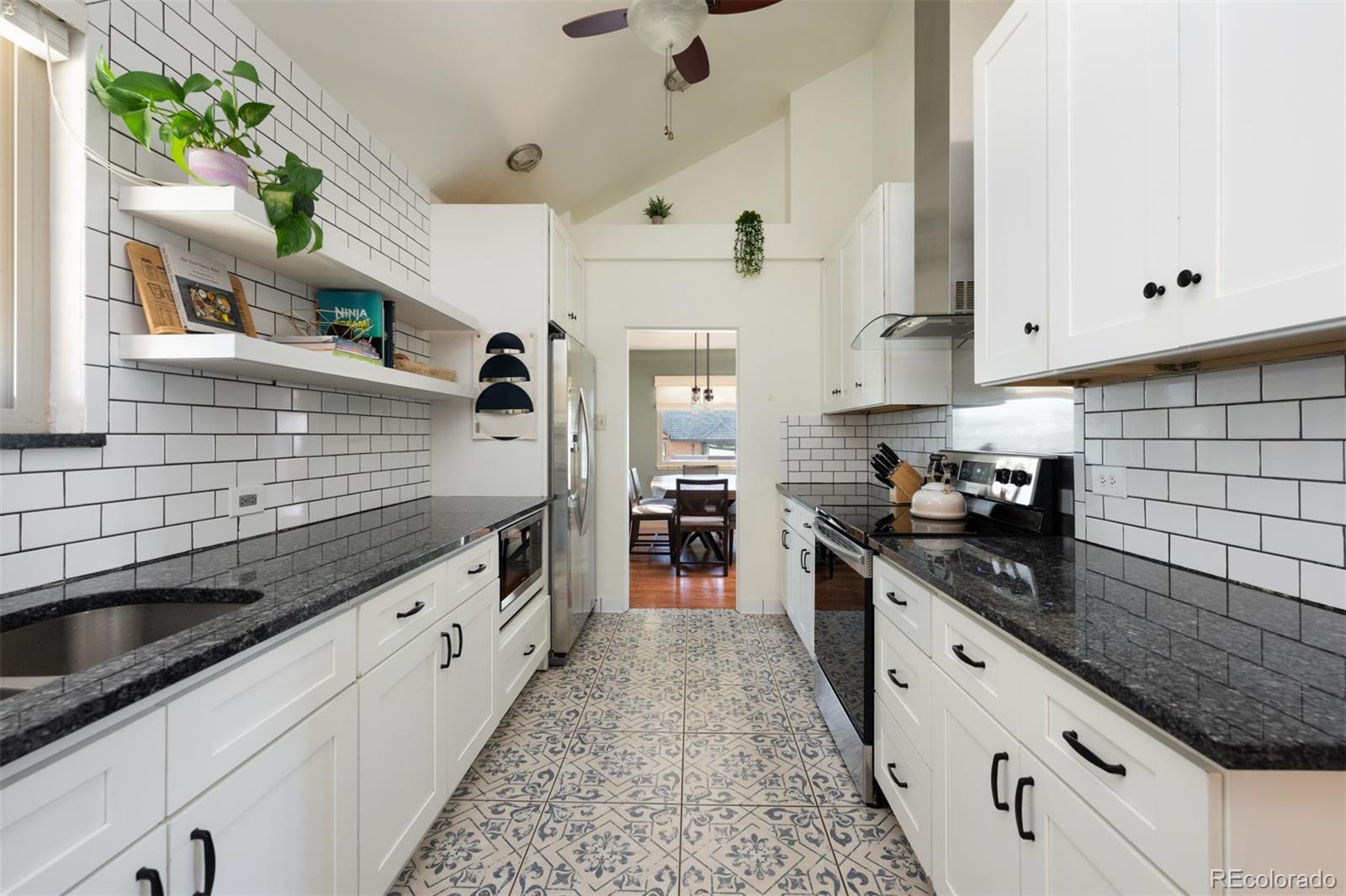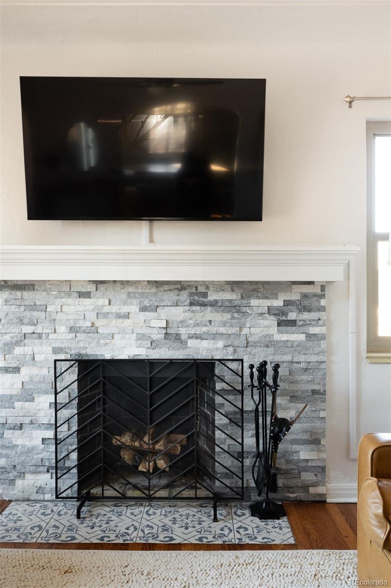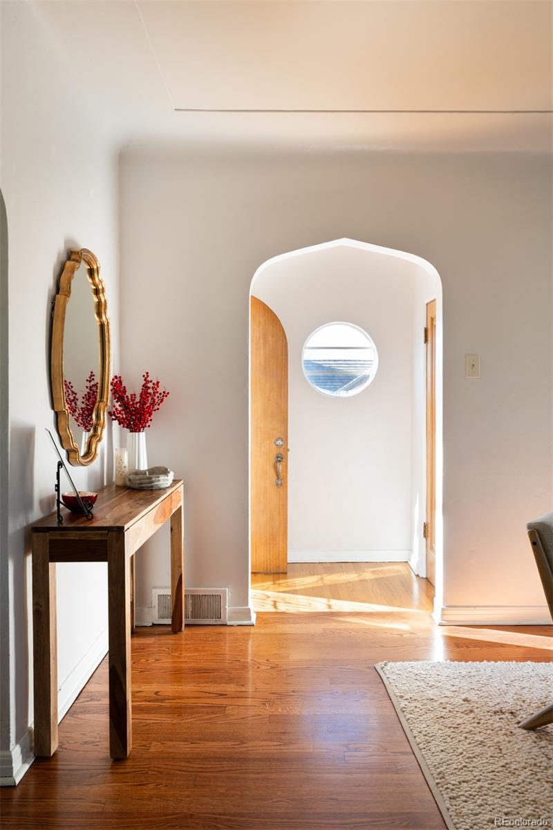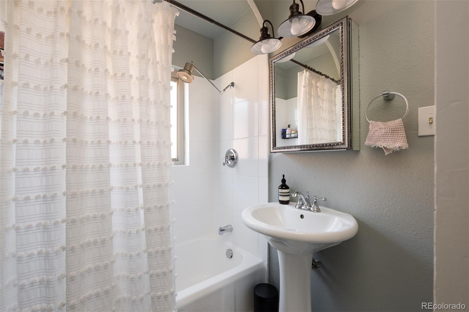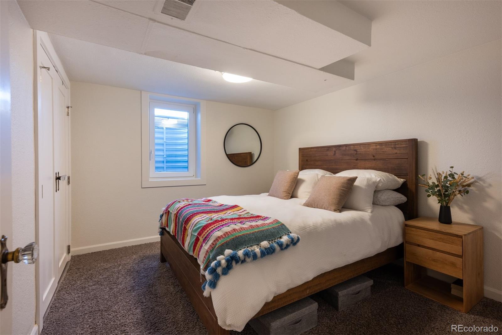 Ideally perched in West Highland almost equidistant to both Tennyson Street and Highland Square, this charming 1940 Tudor seamlessly blends old-world charm with modern convenience. Head inside through the arched doorway where you're welcomed by gleaming refinished original hardwood floors and a rare entryway landing with a coat closet. Large west facing windows welcome you to the bright and sunny living room which is anchored by a cozy wood-burning fireplace with new damper and smoke guard. The dining room features south and west facing windows for providing ample natural light and is bordered by original coved ceilings and arched entryways. The updated kitchen boasts vaulted ceilings and tons of countertop space with the perfect blend of cabinetry and open shelving. Downstairs welcomes you with two additional bedrooms--one featuring an expanded closet and egress window--and a beautifully resurfaced 3/4 bath with cast iron tub. A dedicated gym room and an additional family room with cozy carpet provide the perfect spaces for fitness, movie nights with the family, or focused work-from-home time. Step outside to enjoy your private oasis. The fully-fenced backyard features a freshly resodded lawn supported by a well-maintained sprinkler system, providing great opportunities to unwind, garden, or play. A generously sized patio offers the perfect spot for summer barbecues or relaxing evenings under the stars. A detached 2-car garage with new door is the perfect place to store your vehicle or Colorado adventure toys. Modern conveniences like central air conditioning, forced-air heating, and a new washer/dryer with 3 years remaining warranty ensure year-round comfort. Freshly painted throughout including all ceilings and trim, this move-in-ready home is a must-see for anyone seeking a West Highland property with room to make it their own.
