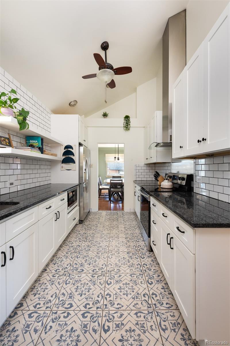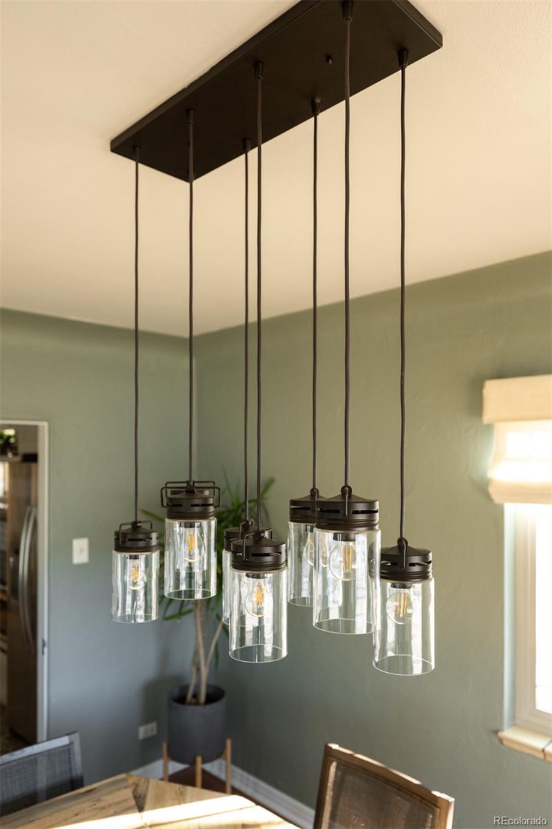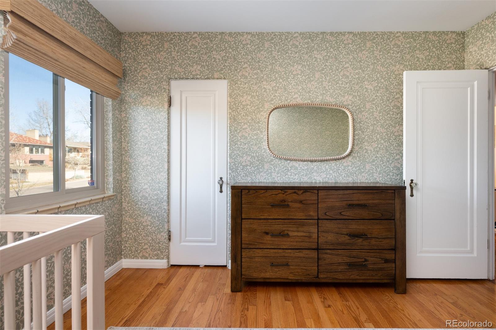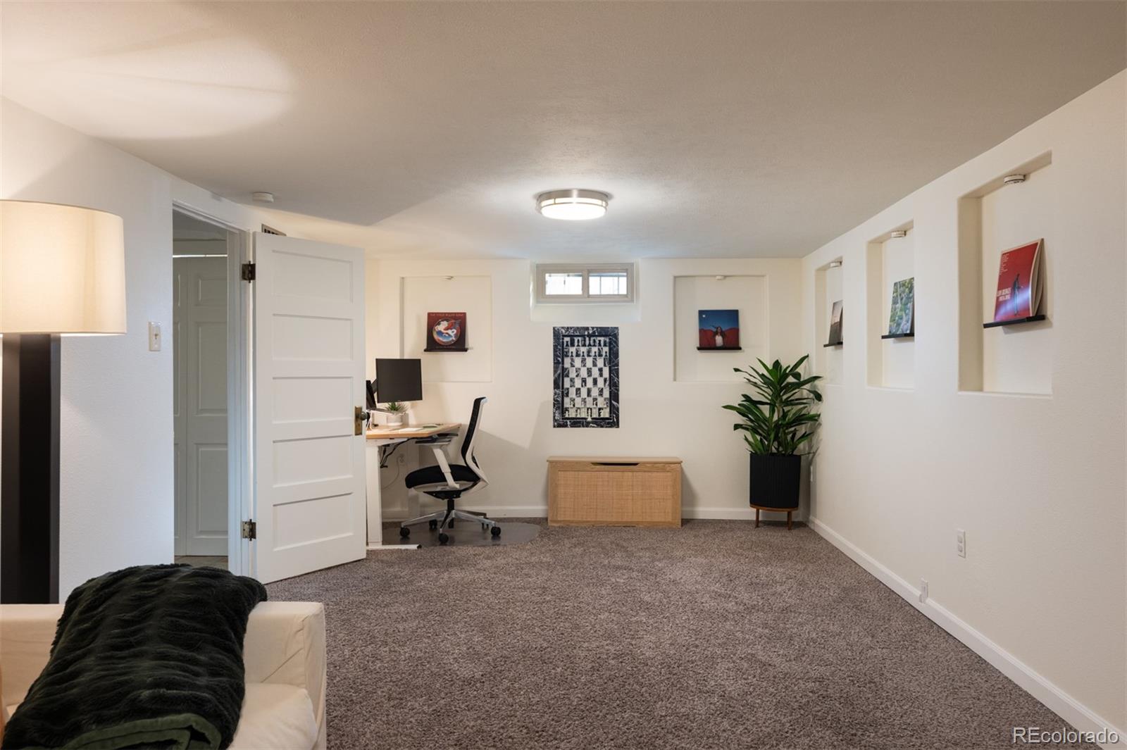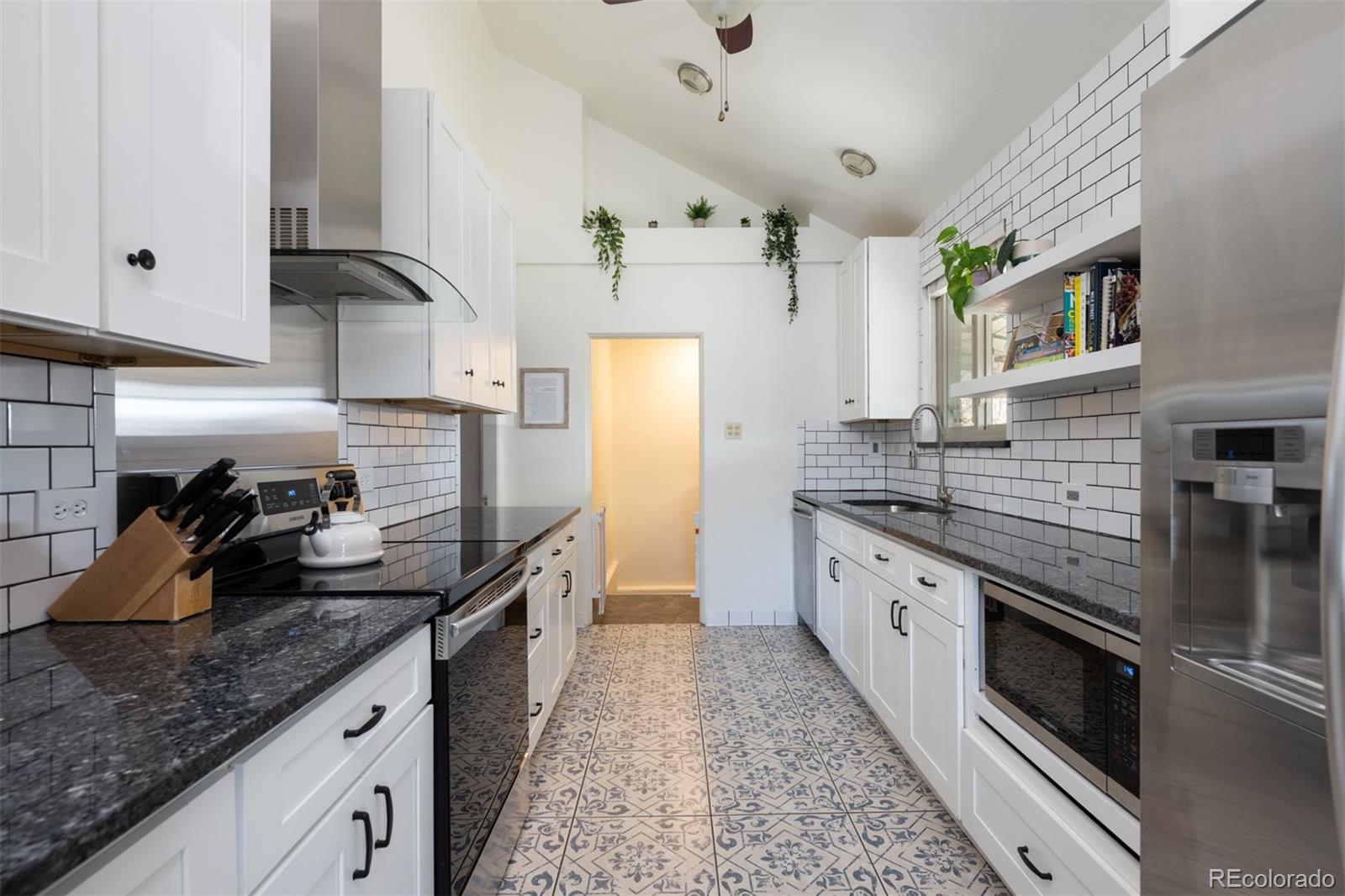 Ideally perched in West Highland almost equidistant to both Tennyson Street and Highland Square, this charming 1940 Tudor seamlessly blends old-world charm with modern convenience. Head inside through the arched doorway where you're welcomed by gleaming refinished original hardwood floors and a rare entryway landing with a coat closet. Large west facing windows welcome you to the bright and sunny living room which is anchored by a cozy wood-burning fireplace with new damper and smoke guard. The dining room features south and west facing windows for providing ample natural light and is bordered by original coved ceilings and arched entryways. The updated kitchen boasts vaulted ceilings and tons of countertop space with the perfect blend of cabinetry and open shelving. Downstairs welcomes you with two additional bedrooms--one featuring an expanded closet and egress window--and a beautifully resurfaced 3/4 bath with cast iron tub. A dedicated gym room and an additional family room with cozy carpet provide the perfect spaces for fitness, movie nights with the family, or focused work-from-home time. Step outside to enjoy your private oasis. The fully-fenced backyard features a freshly resodded lawn supported by a well-maintained sprinkler system, providing great opportunities to unwind, garden, or play. A generously sized patio offers the perfect spot for summer barbecues or relaxing evenings under the stars. A detached 2-car garage with new door is the perfect place to store your vehicle or Colorado adventure toys. Modern conveniences like central air conditioning, forced-air heating, and a new washer/dryer with 3 years remaining warranty ensure year-round comfort. Freshly painted throughout including all ceilings and trim, this move-in-ready home is a must-see for anyone seeking a West Highland property with room to make it their own.